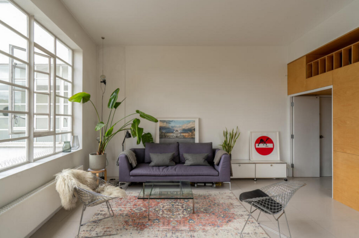 Upon entering, you’re immediately struck by the sense of space and light — soaring ceilings and original full-height windows flood the interior with natural sunlight, creating a bright, airy ambiance throughout.