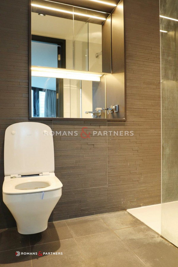 As you enter the apartment, you are welcomed into a beautifully lit open-plan living space, where expansive floor-to-ceiling windows bathe the interior in natural light throughout the day. The thoughtfully designed layout unites the living, dining, and kitchen areas into a fluid and functional environment—ideal for both quiet evenings at home and lively gatherings with guests. Clean lines, neutral tones, and stylish modern décor elevate the atmosphere, creating a serene and inviting backdrop for daily life.