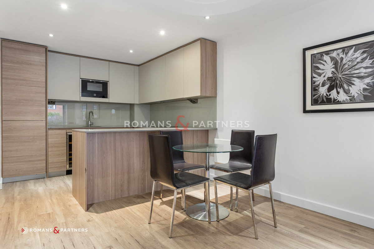 The stylishly laid-out one-bedroom space features an open-plan lounge and kitchen area, making it an ideal setting for entertaining guests. With engineered wooden flooring throughout the living room is a bright and spacious apartment making the 570 sq.ft feeling even larger than it already is! A peaceful terrace, accessible from the living room and offers views over the internal landscaped gardens.