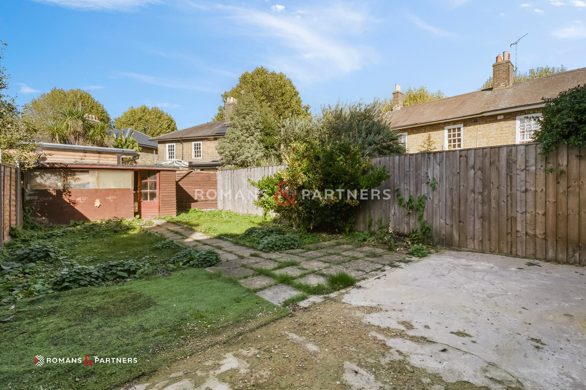 - Large private north-facing garden with substantial storage shed