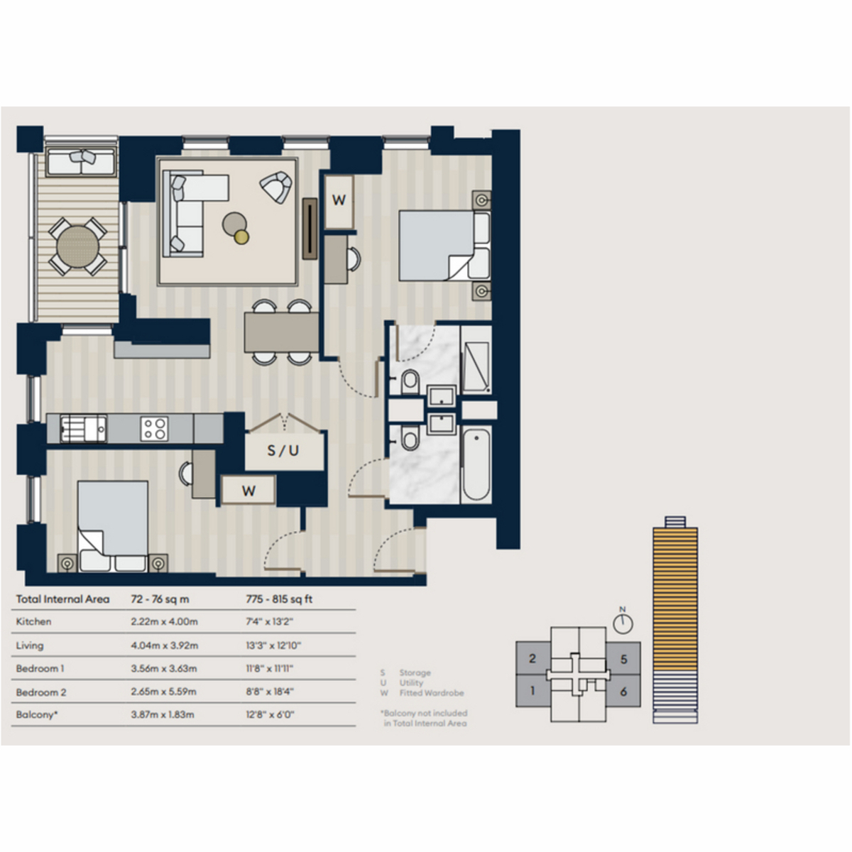 Spanning 775 square feet, this two-bedroom apartment epitomizes modern elegance, with textures and colours meticulously selected for their subtle beauty and streamlined functionality. The living room is a spacious, open canvas of relaxation, inviting you to imprint your unique style, while neutral tones cultivate a sophisticated ambiance. The in-out flow that is offered in these apartments is second to none with the private balcony built into the core of the building, means you are protected from the elements. This apartment specifically offers a North & West exposure.