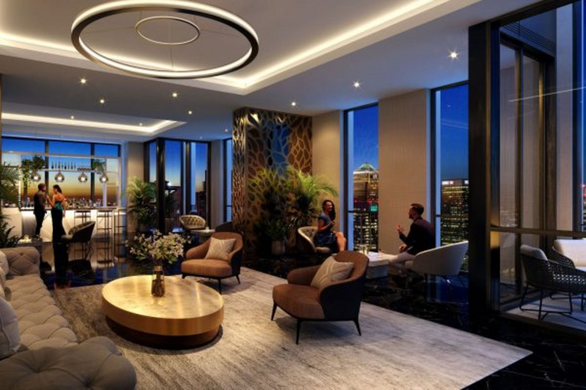 - Residents’ 45th floor cocktail lounge and private gym