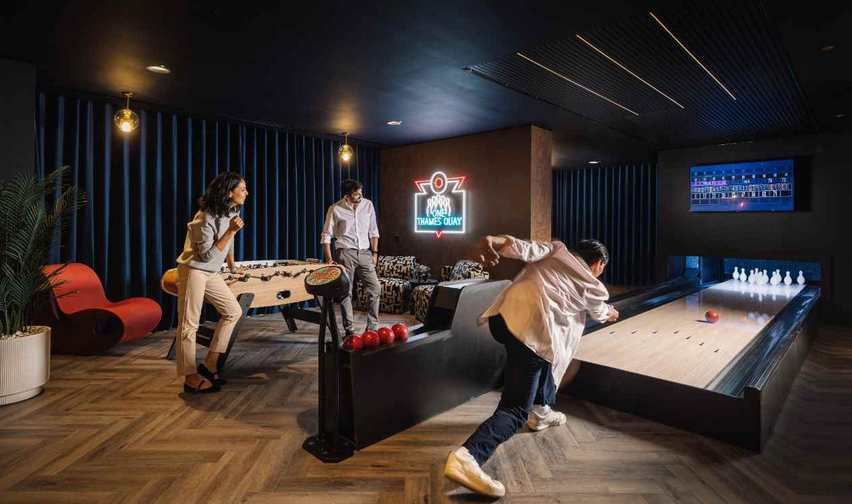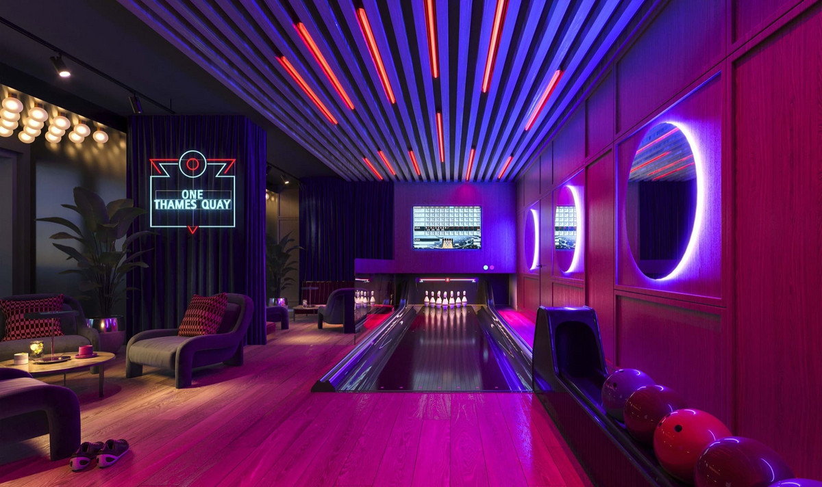 Residential life at One Thames Quay surpasses the ordinary, providing exclusive access to a collection of private amenities that epitomize refined luxury. Residents have full access to a 24/7 concierge and security service. Located on the second floor you have a 12 pin bowling alley, cinema room and canopy gardens. Then on the 46th floor residents can access the state of the art sky gym & lounge as well as a west & east terrace offering views of Canary Wharf & Greenwich.