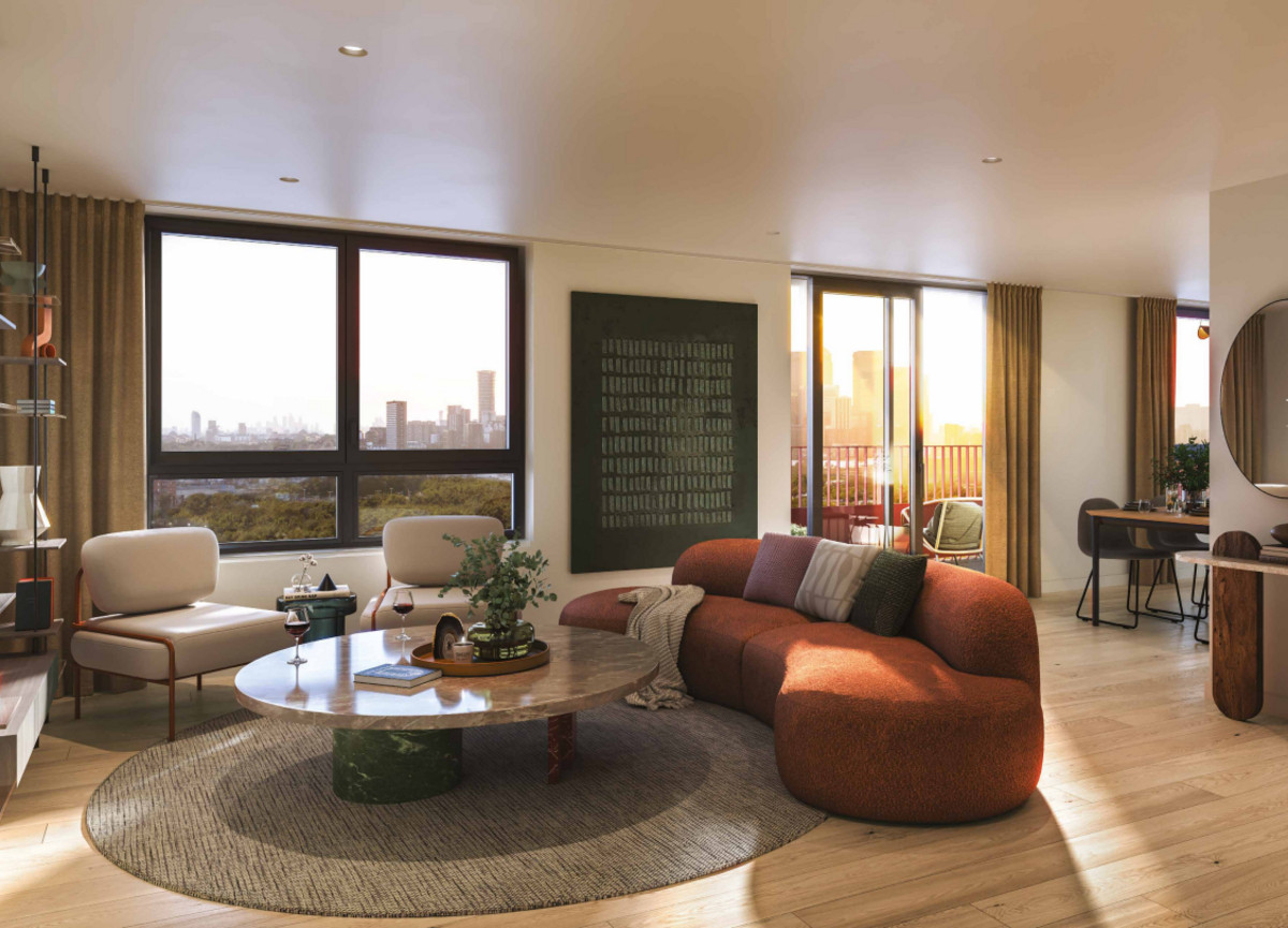 Inside the apartment, engineered wood flooring flows seamlessly through the living areas, complementing the soft neutral finishes to create a light-filled, welcoming environment. With Central Park at your doorstep and the Thames only moments away, the home offers a lifestyle where calm open spaces meet the energy of London life.